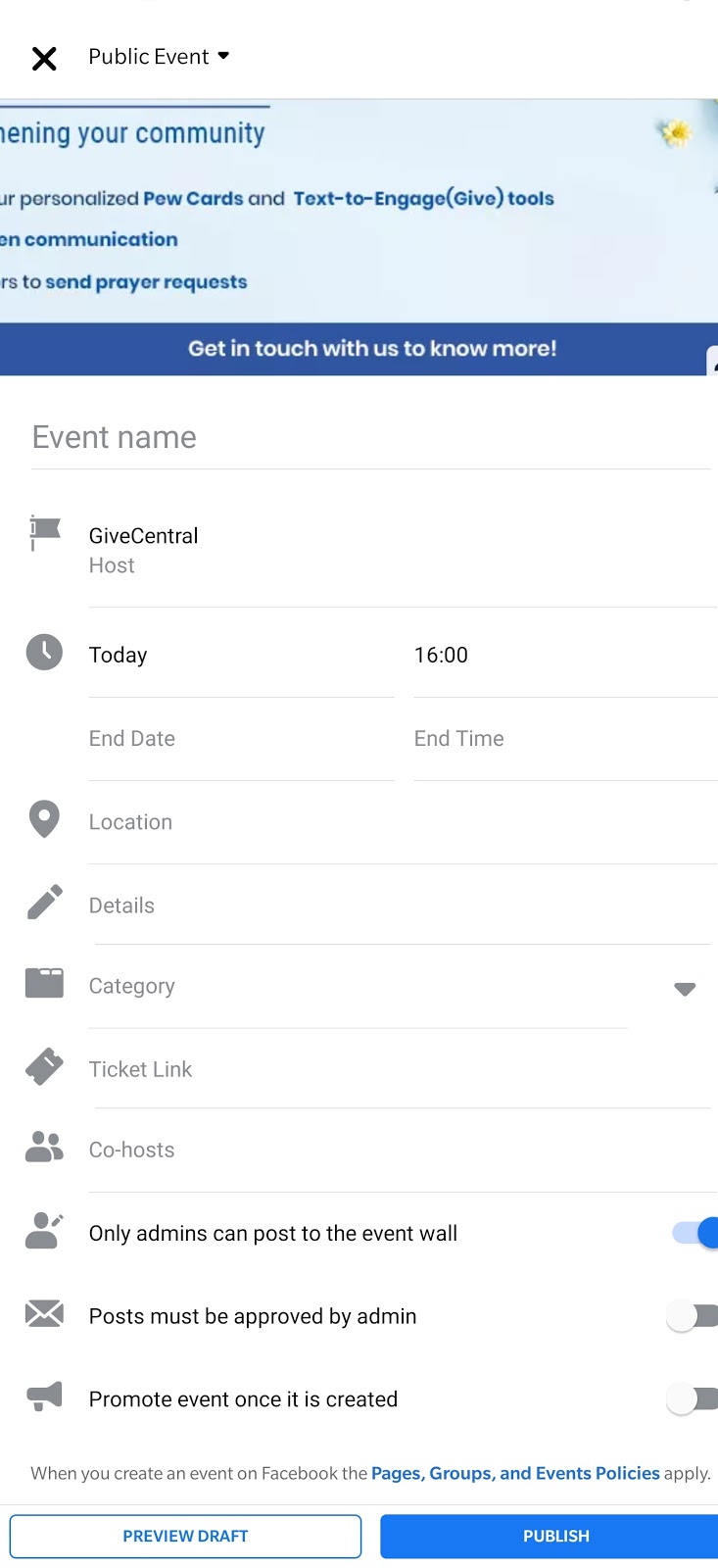 To do the same, users must either schedule the live video from Facebook web (which is discussed further below) or create a scheduled “Event” on their page from the app.